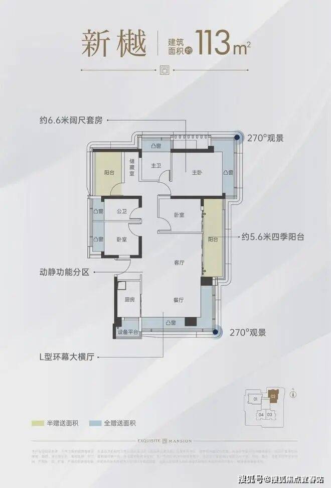 91㎡户型得房率约89%,113㎡户型高达94%,通过设备平台、飘窗等空间优化,实用面积远超常规新盘。