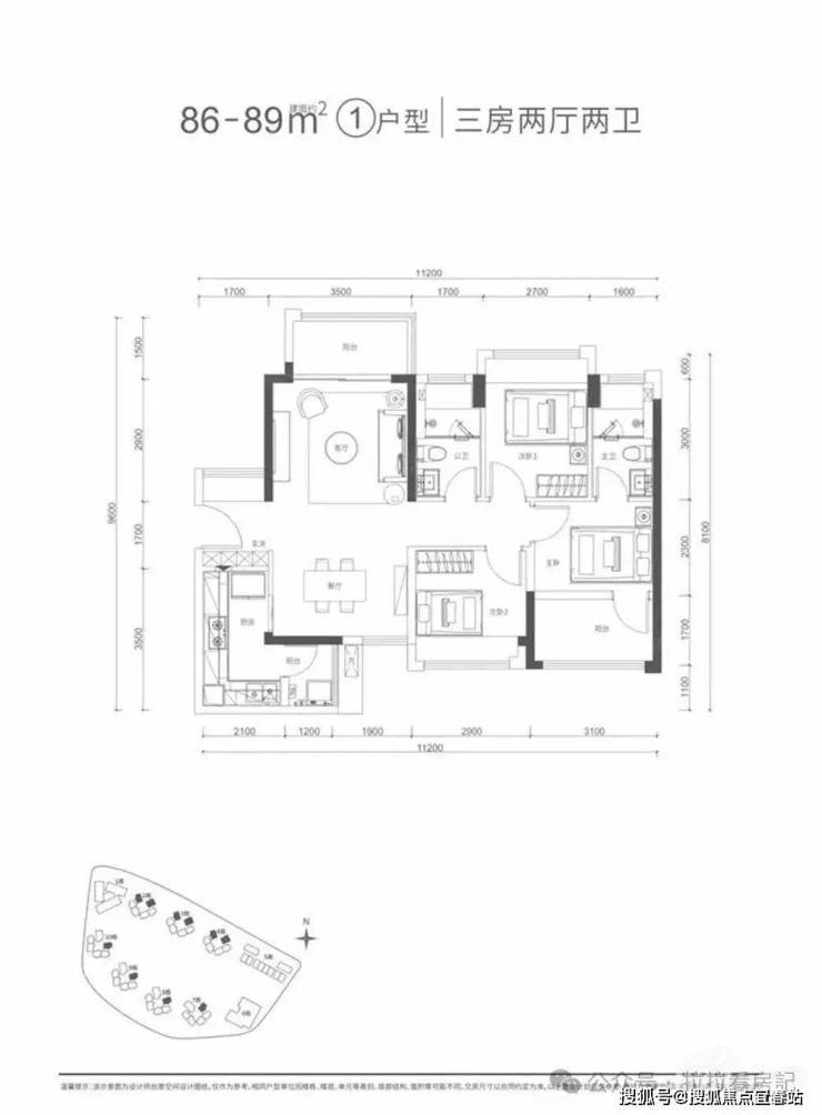 建筑面积约86-89㎡ ①户型