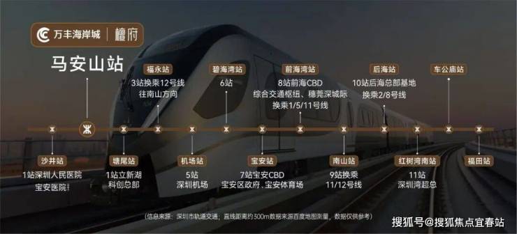 这次海岸城檀府距离11号快线马安山站直线仅300m,5站到机场,7站到宝中。换乘1号线还可通勤南山科技园、后海、福田中心和车公庙等。