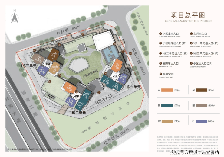 由3栋36-41F住宅塔楼和一栋局部2-3F商业组成,住宅总共410户,层高3.1米,3梯4户,停车位578辆,招商物业,9.5元/㎡/月,预计2028年3月精装交付。