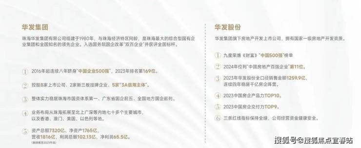 华发集团:组建于1980年,与珠海经济特区同龄,是珠海最大的综合型国有企业集团和全国知名的领先企业。入选国务院国企改革“双百企业”并获评全国标杆,2023年中国企业500强169位。(数据截至2023年底)