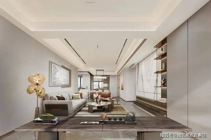 ②颜值品质空间:750*1500mm卡塔灰超大地砖通铺、柜体木纹留影、抗潮湾玺同款金属PET、天幕白玉电视背景墙、特殊玻璃、仿金属踢脚线,多个豪宅同款颜值细节,生活充满爆款。公区的意大利灰大理石,仿木纹铝合金顶板,金属线条装饰,玫瑰金电梯门框,豪华酒店式电梯,精致大堂壁画,全空间高颜值。