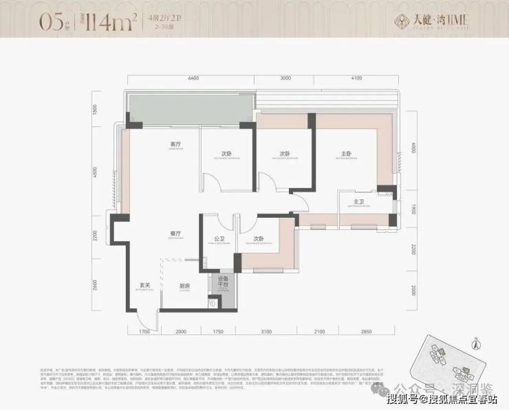 ✅ 05房:114㎡,四房安静、客厅270度转角玻璃,竖厅,东北/北。