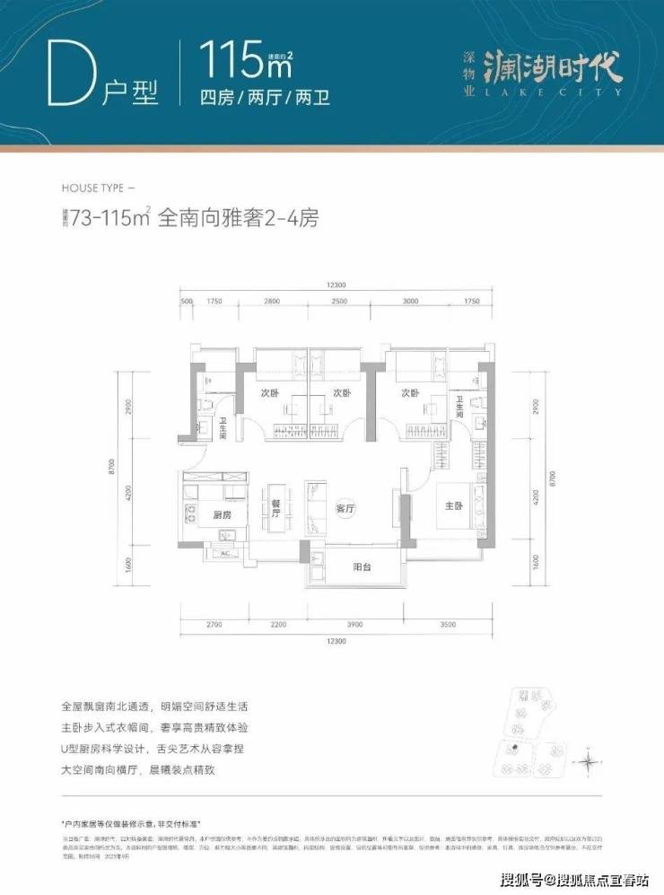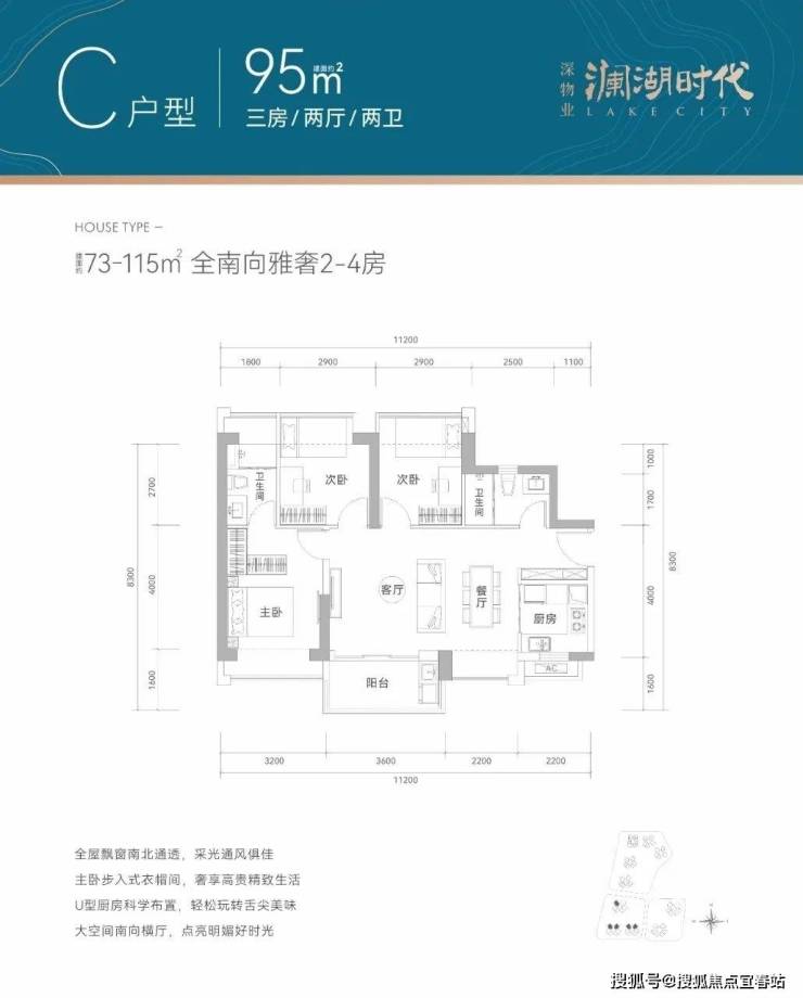 产品面积段:建面约73-115㎡全南宽奢2-4房