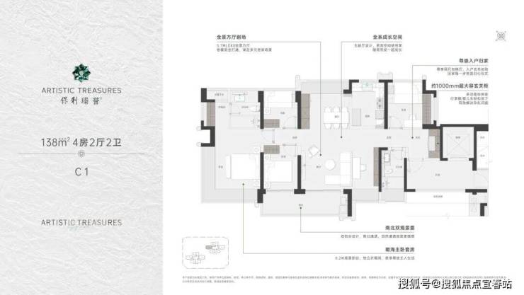 相比143㎡通透户型少5㎡,享受同样的功能体验。对于注重通风对流,平时喜欢在大厅待着的需求,这个南北通的大方厅户型会比较适合。