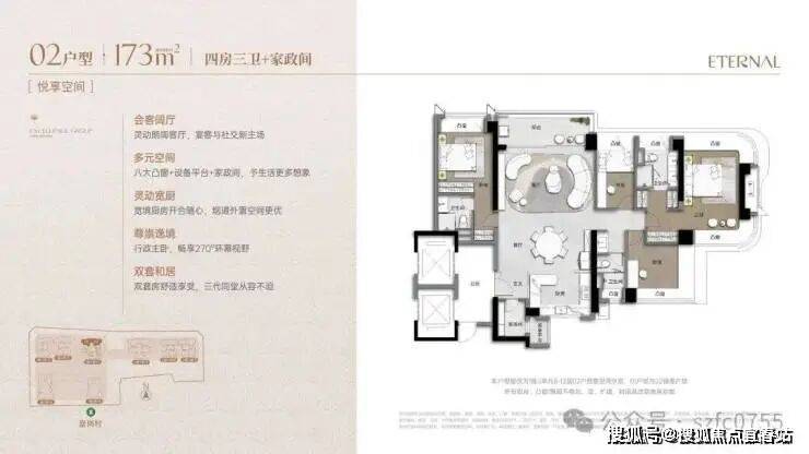 项目为福田皇岗200万㎡超体更新的首发之作;卓越缦悦首批推售1栋五单元(首推)、45层,共计232套。建面约:92-173㎡3-4房,新规产品,使用率超90%,大户型双电梯独立电梯厅入户。