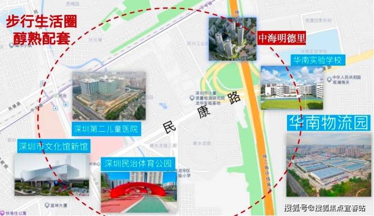 2)沿民康路两侧已陆续聚集了包括深圳市文化馆新馆、深圳第二儿童医院、已开园的深圳民治体育公园等市政配套。