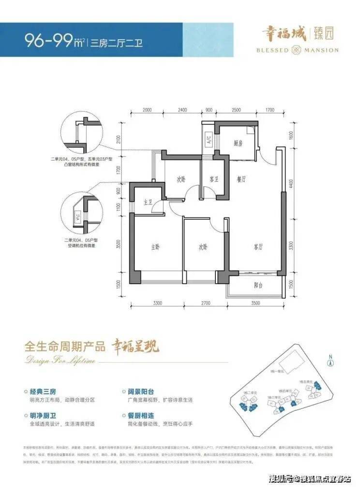 建面约96-99㎡3房2厅2卫