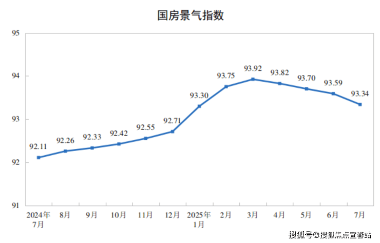 7月份,房地产开发景气指数(简称“国房景气指数”)为93.34。