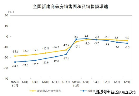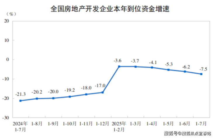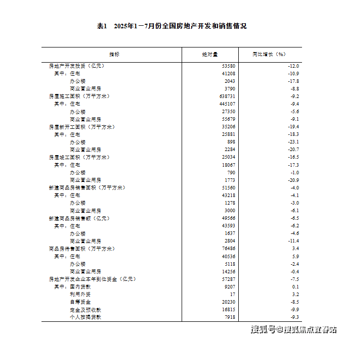 1—7月份,全国房地产开发投资53580亿元,同比下降12.0%(按可比口径计算,详见附注6);其中,住宅投资41208亿元,下降10.9%。