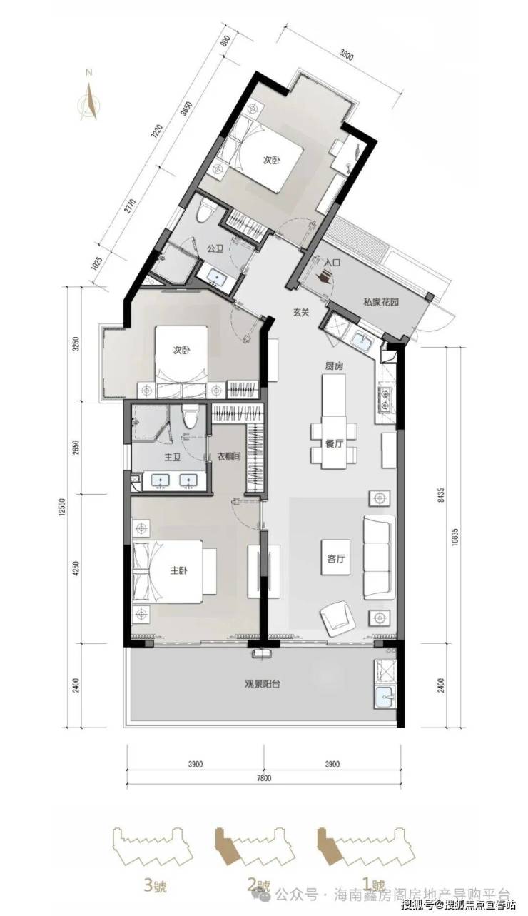 3栋低密纯板高层建筑,一字布局,户户坐北朝南,皆享20㎡超大观景阳台180°瞰海观山的极致视觉,海天山色尽收眼底。1.35绝版超低容积率只为成就223席高端舒适的完美胜境。