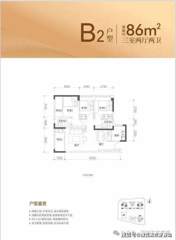 86㎡的3房2厅1卫,折后总价365-405万/套,折后单价4.26-4.72万/㎡。