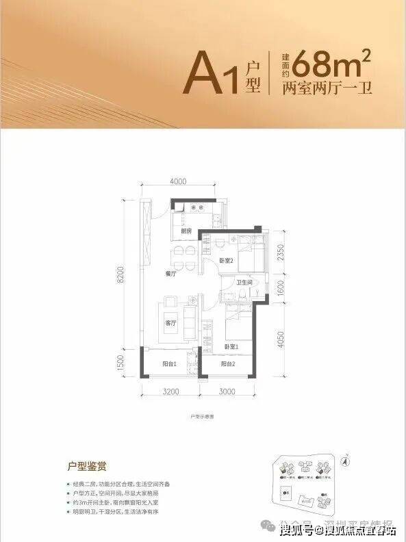 68㎡的2房2厅1卫,折后总价260-315万/套,折后单价4.25-4.64万/㎡。