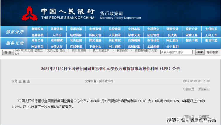 2024年3月20日央行发布的5年期以上LPR为3.95%。