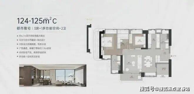 【124-125㎡ 3+1房2卫】C户型:横厅户型,双阳台设计。西北朝向(01)看绿地公园及花园