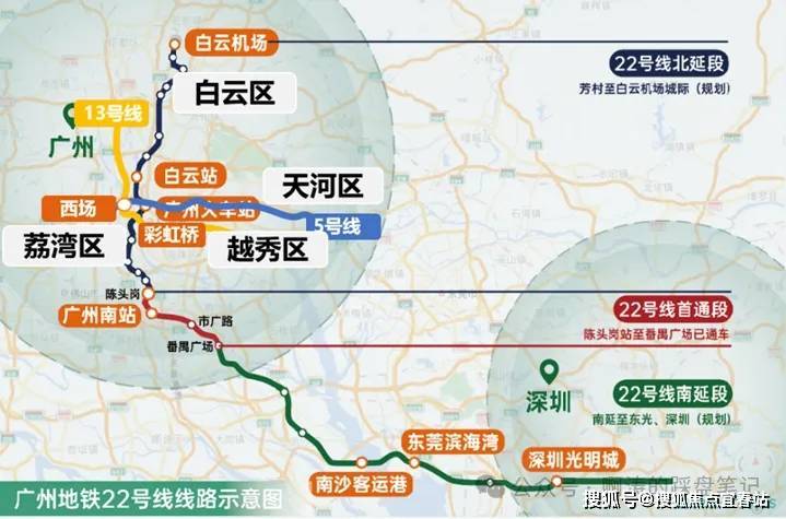 🚇22号线北延段:8️⃣站直达白鹅潭,经广州火车站、彩虹桥🉑换乘1、2、5、8、9、11、13、14号线畅达海珠、荔湾、越秀、天河、珠江新城,贯穿全市