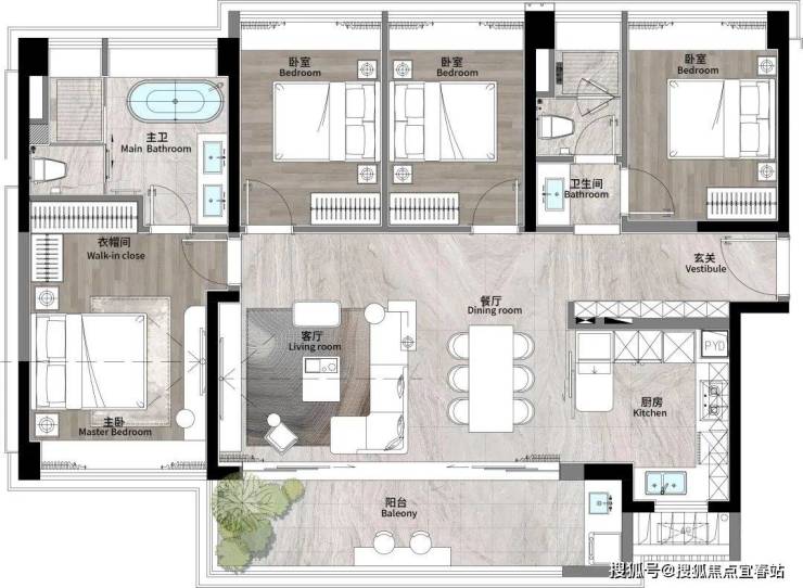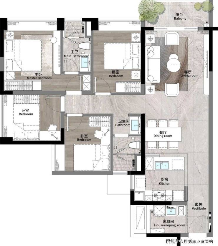 建面约140m² | 四室两厅两卫(横向)
