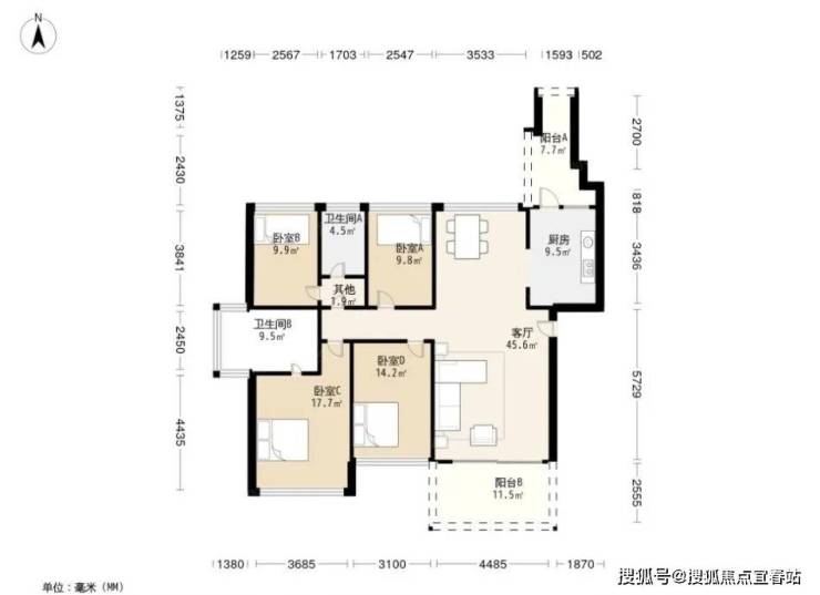 六栋01、02户型——建面约170㎡4房2厅2卫