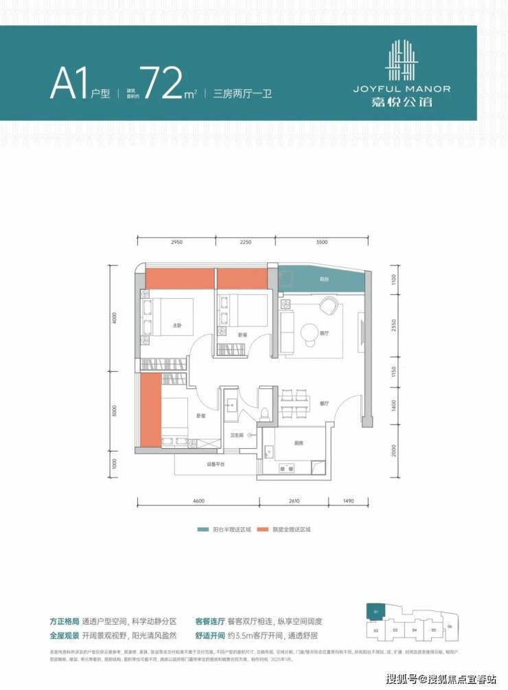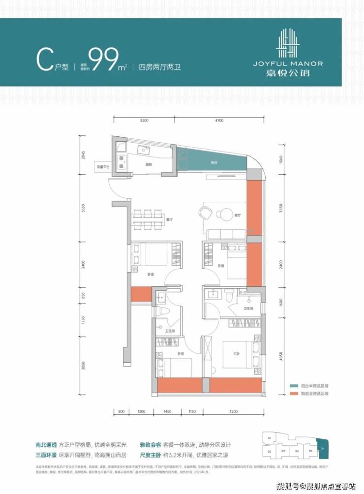 户型区间:72-99㎡三至四房,精装交付,实用率领先市场