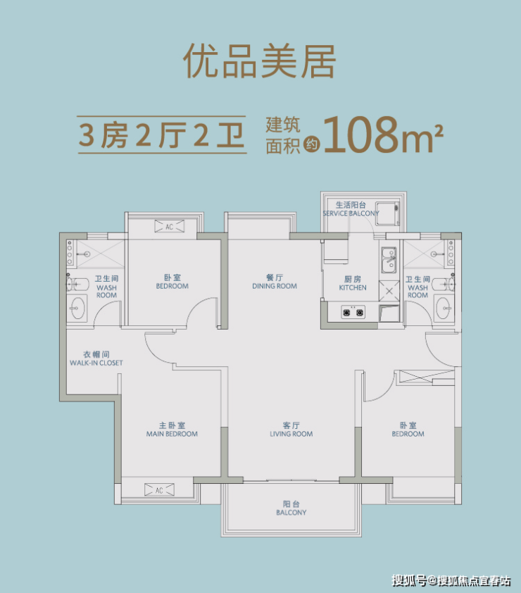 约108平方米的三房户型,全屋南北对流,入户门旁设有独立卫生间,可作为清洁区域,守卫家人健康。宽阔通透的LDK客餐厅,配上双阳台和飘窗,让整个家中都舒展开来。