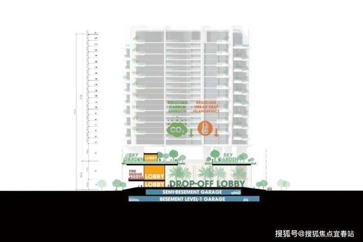 为回应城市开放性与社区私密性的双重需求,项目将建筑整体抬升18米。这一策略形成双层空间结构: