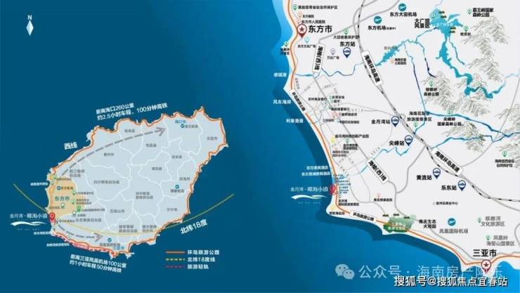 项目位于海南省东方市金月湾滨海旅游度假区,地处大三亚经济生活圈,位于北纬18°黄金纬度带,是海南省继国家海岸海棠湾之后第二个由政府主导开发的湾区,打造以投资、康养、度假、休闲于一体的综合性旅游度假区。周边涵盖了4A级花梨谷养生度假区、尖峰岭国家森林公园、千亿长隆国际生态旅游文化综合区、东方小桂林、大广坝水库、莺歌海盐场、黑脸琵鹭自然保护区等旅游资源。