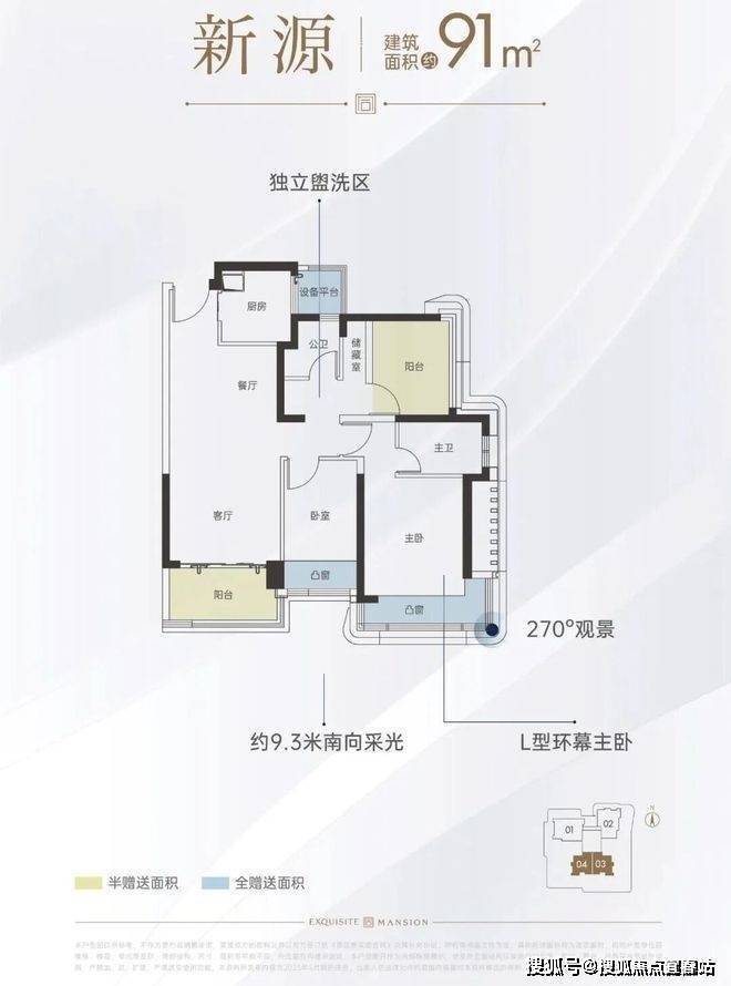 建面约91-123㎡高定新规住宅,使用率94%!约3.1米层高,扩容生活尺度。户户坐北朝南,三面采光,打造270°环幕主卧。131户配置132个车位,3梯4户。