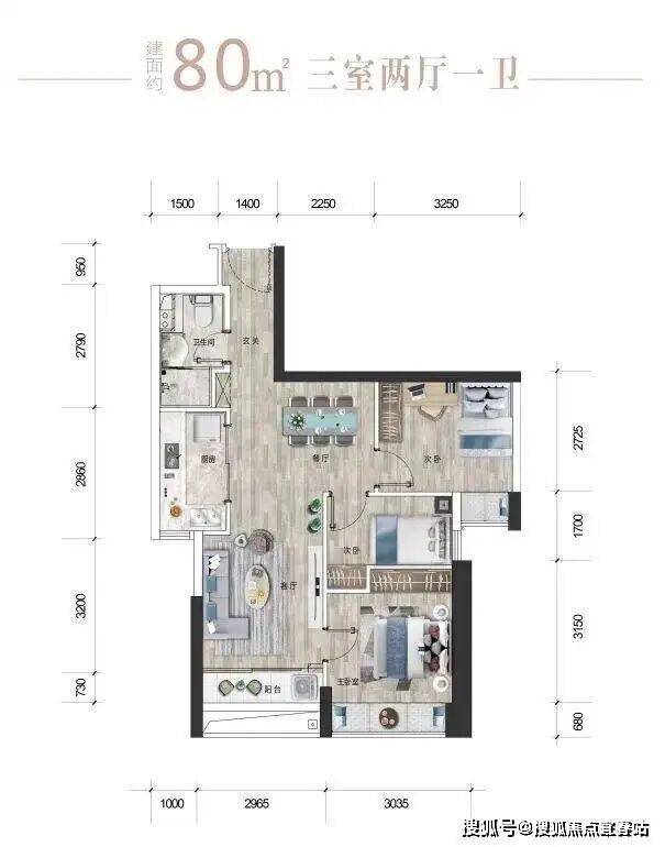 【户型②】北06/南07:约80㎡三房两厅一卫