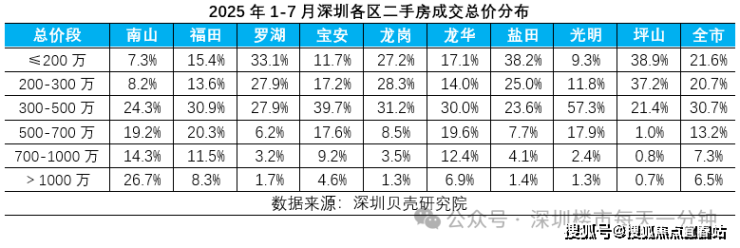 据深圳贝壳研究院数据显示,今年1-7月4万元以下成交占比达到42%,居各单价段之首。