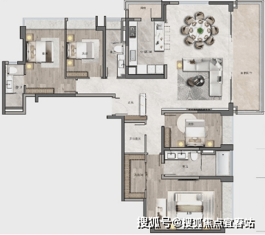 约200㎡四房两厅三卫:两套间设计、中西双厨,双阳台设计!