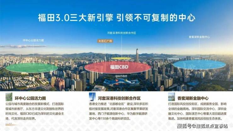 福田区全力建设河套深港科技创新合作区、香蜜湖新金融中心、环中心公园活力圈“三大新引擎”,突出发展科创、金融、时尚三大产业,乘势“深港北部都会区”头排地利,打造深圳无可撼动的经济发展极。