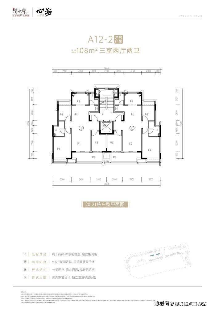 洋房产品户型图:建筑面积约108㎡,三房两厅两卫