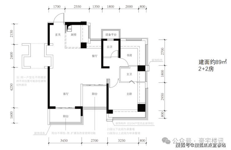 (1)建筑面积约89㎡户型