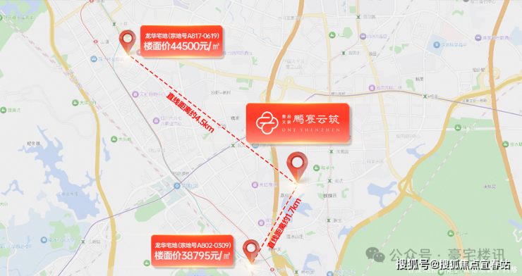 7月7日,民治街道梅林关A802-0309号宗地,吸引6家开发商参拍,经108轮竞价,以23.7亿元总价、38795元/㎡楼面价、40.74%的溢价率被拿下;6月19日,民治街道上塘A817-0619号宗地,吸引8家开发商参拍,经57轮竞价,以12.12亿元总价、44559元/㎡楼面价、46.6%的溢价被拿下,房企热抢 ,区域未来的价格充满想象。