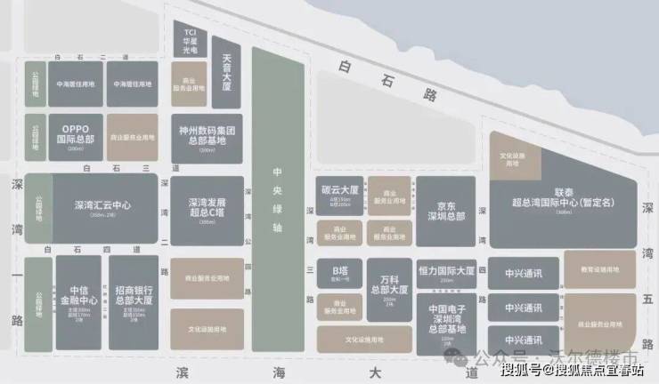 深圳湾超级总部基地由政府亲力运营,须是世界500强、中国200强的企业方可入驻。截至目前,确定入驻的企业总部已达16 家,其中多家已破土动工或封顶,预计2027年整体投入运营。