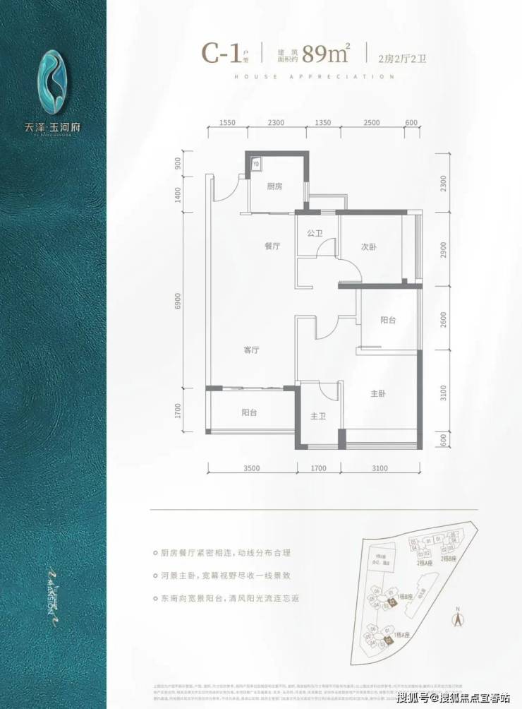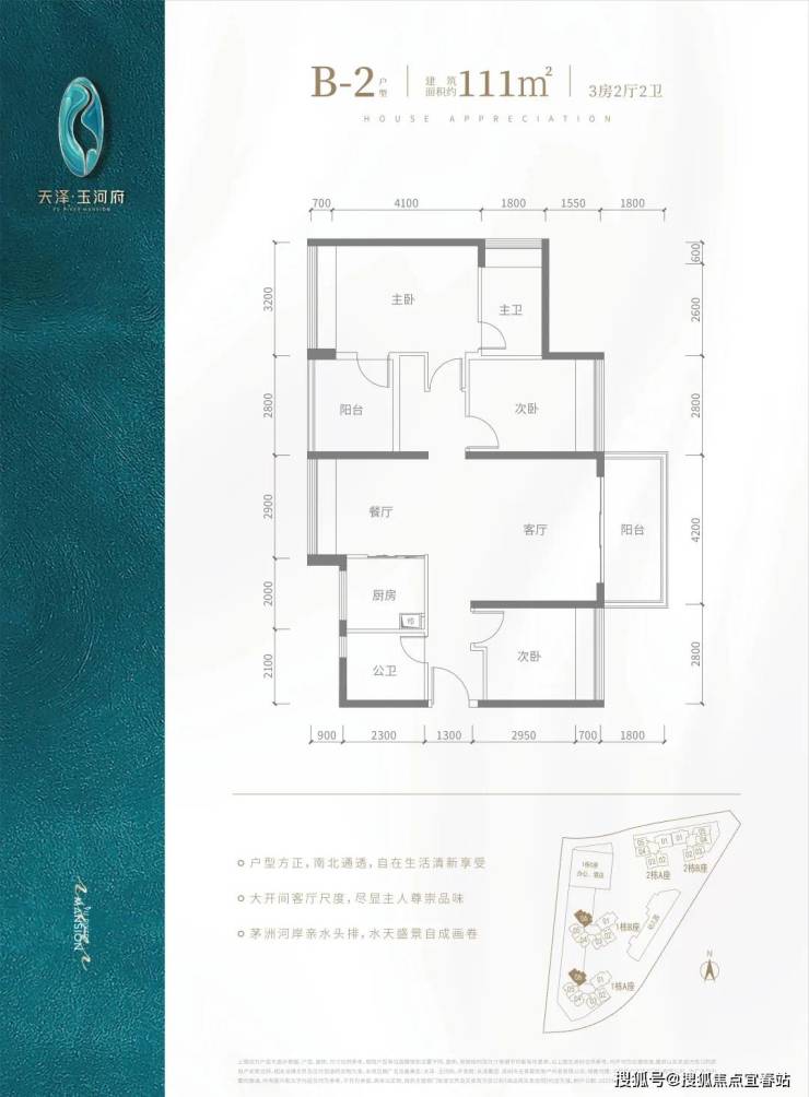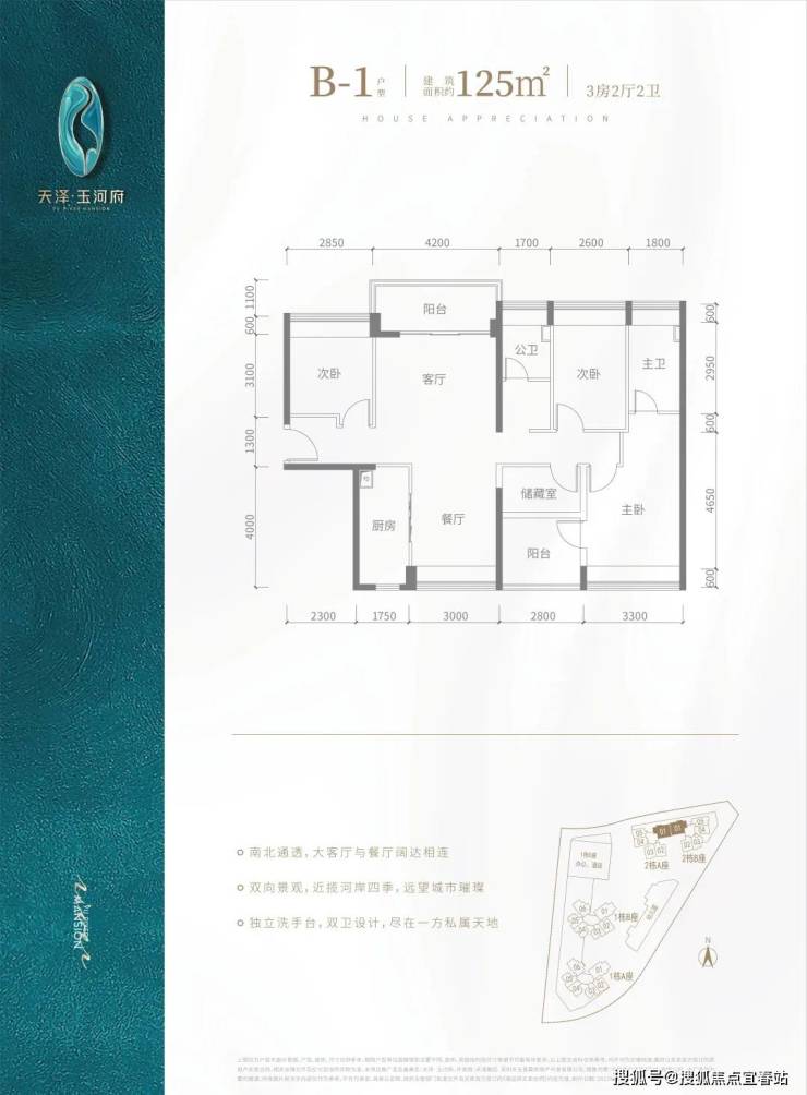 V型塔楼布局,南向阳光户型,约80%高实用率,双阳台,光明罕有绝版户型。建面约80-143㎡河岸美宅,赠送高标准绿建简装,向往的生活在这里触手可及。