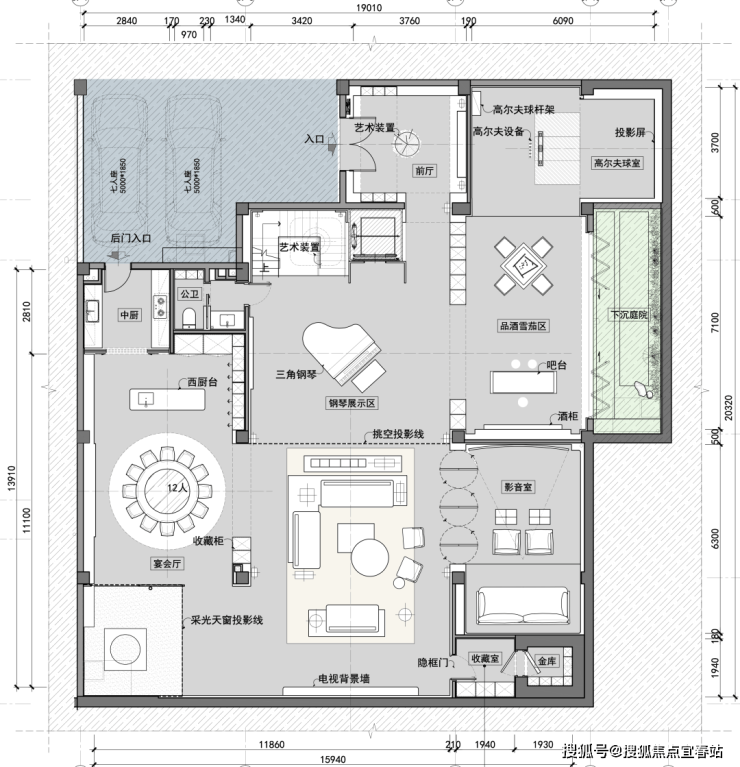 负一层下沉庭院周边设工人房、家政间,储物无忧;