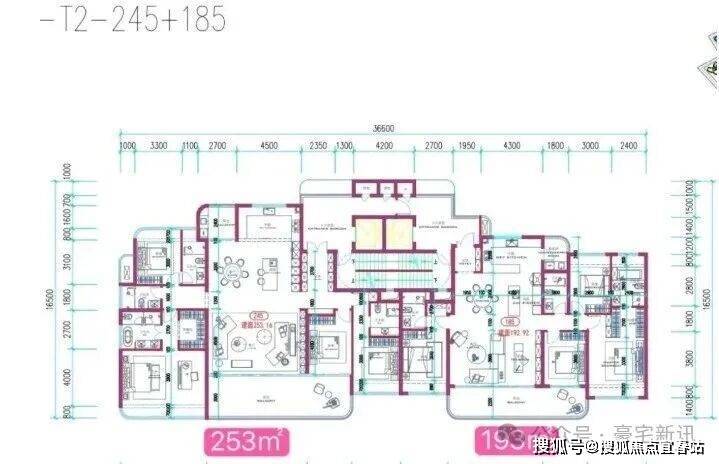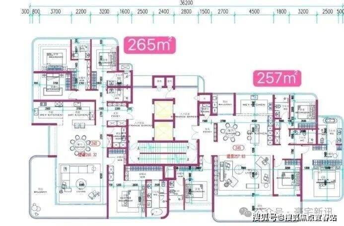 另外还有253-265平4房4卫的大平层豪宅,3套间+西厨。