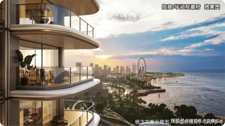 景观资源最大化:广泛采用270°转角飘窗、7.8–9.7米宽景阳台,将前海湾、欢乐港湾摩天轮及城市天际线纳入视野;