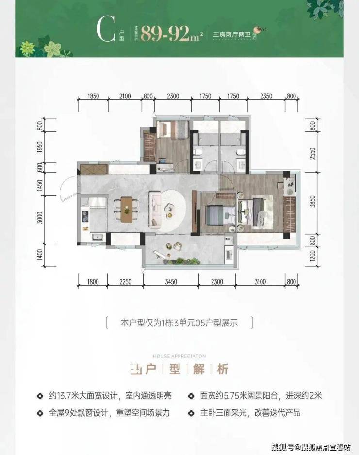 作为招商蛇口深圳公司首代、前海会展片区首个超级新规作品,项目建面约78-117㎡三至四房户型,拓展后实际使用率高达96%-105%,兼顾实用、宽敞、阳光与精致。