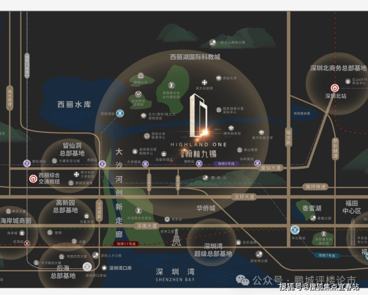 💎多维立体交通 国际化枢纽路网留仙大道正席,紧邻地铁5号线塘朗站,4/5/7号线3轨环绕,毗邻“三纵五横”主干道,瞬息通达全城。西丽高铁站(建设中)、深圳北站两大枢纽环绕,拥有世界交通能级。