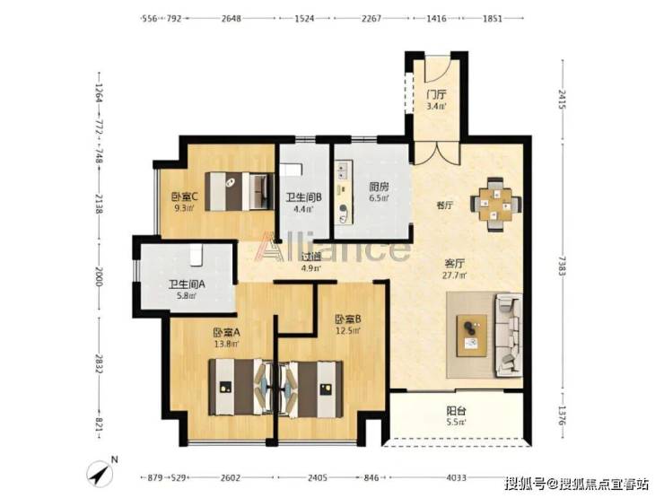 户型:3房2厅3卫