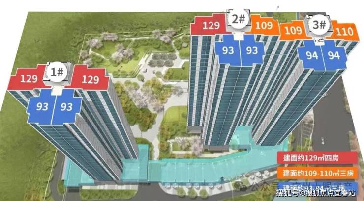 户型上,小区的户型设计基本一样,产品涵盖建面约93-95平、110平、129平四种户型,