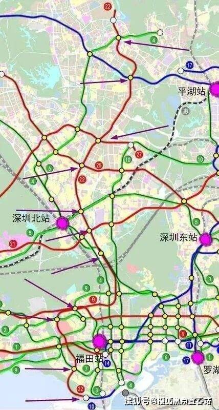【超便捷:湾区交通中轴 深圳交通枢纽】全国最大高铁枢纽——深圳北站🚇,4/5/6号线地铁串联全市,规划中22/25/27号线,距规划中22号线油松站仅200米,五横四纵通达全城。