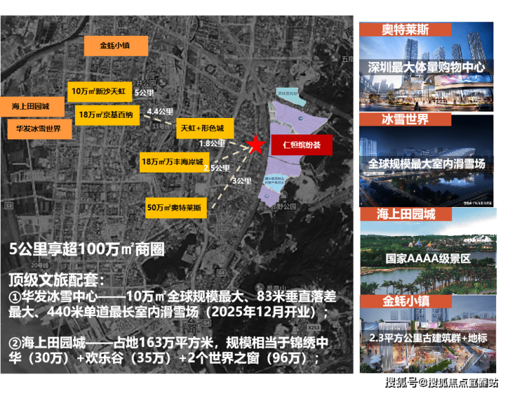 文旅配套:华发冰雪中心—约10万㎡全球规模最大、约83米垂直落差最大、约440米单道最长室内滑雪场(2025年12月开业);海上田园城—占地163万平方米,规模相当于锦绣中华(30万)+欢乐谷(35万)+2个世界之窗(96万)。