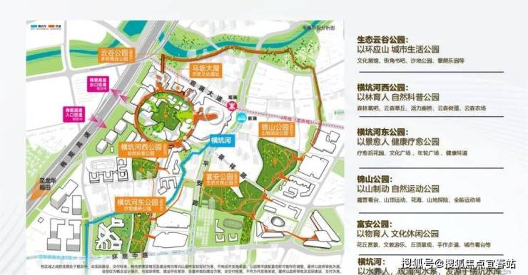 5大公园融入社区,起步即城市级公建,造就超越当代的都市活力地标环;统合历史文脉、自然山水、城市建设、多元业态,构建全生命周期的城市中心理想典范