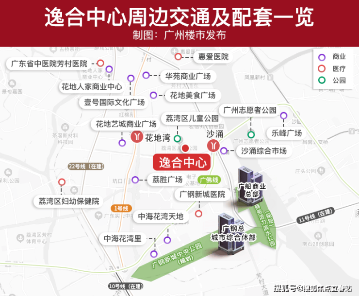 广州逸合中心处在白鹅潭中央商务区“一心四片”中的岭南宜居生活区,也恰好是白鹅潭中央商务区、广钢新城中央居住圈、花地生态城三大核心板块的交汇处,是名副其实的三核资产物业。