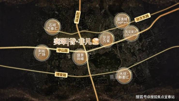 奕翠园,家门一条中山路,短短4公里,就 将利和、盛景尚峰、中山天奕星河Cococity,还有华润万家4个商圈串成一线。