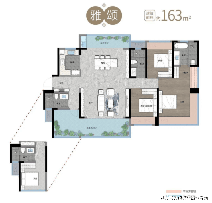 项目主打约 110 - 188㎡的全系改善户型,实用率高达约 120%。以客餐厨一体化布局、双厅双阳台配置,打造奢阔居住空间,满足不同家庭的生活需求。