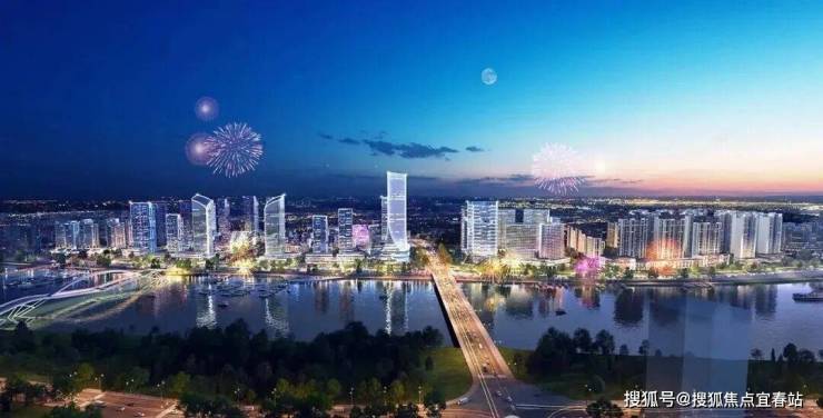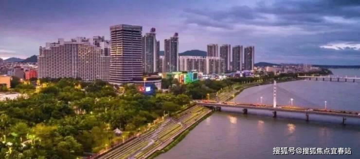 ②北靠元宝山、南向陵水河、都市夜景、滨河湿地公园景观;